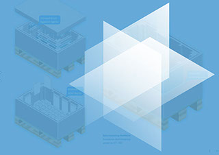 The Product is The Hero | Das Grafische Element Transparente, isometrische Flächen transportieren die Produkteigenschaften Modularität und Variabilität.